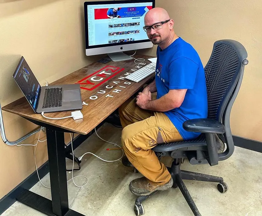 Halfway through his program, Harris and his wife, Callee, decided it was now or never. So in addition to completing his degree with honors, he launched his You Can Make This Too YouTube channel and his furniture making brand, The Custom Furniture Guy. He decided to give himself 18 months to see if these ventures would be successful enough to merit a career.