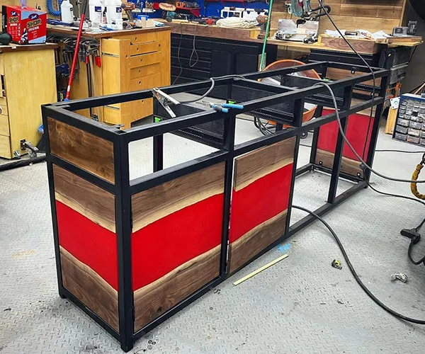His first big project was using TotalBoat High Performance Epoxy to create a fish tank aquarium with an epoxy river and waterfall. From there, he met up with us at WorkBenchCon, and “we’ve been besties ever since!” he says.
