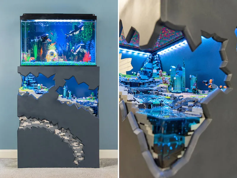 L-R: The unique aquarium stand Harris made; High Performance Epoxy waterfall inlay