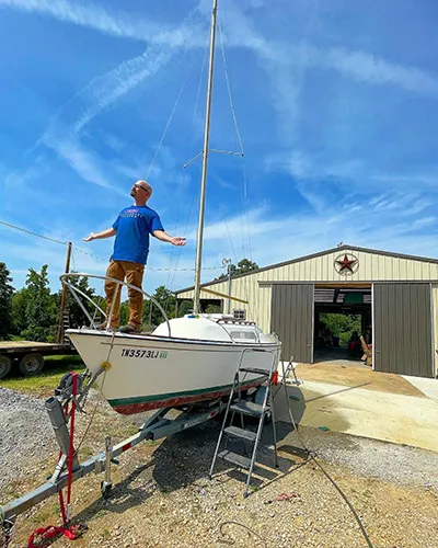 Before leaving Bristol, he found a 1976 20’ O’Day for sale back home in Tennessee, and negotiated a deal, with input from TotalBoat employees. The day he went back, he picked up the boat, but it took a few weeks to get it lake-ready.