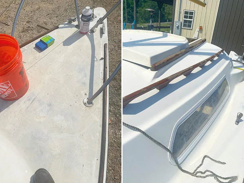 Cleaning topsides with TotalBoat Boat Soap (before and after pictures)