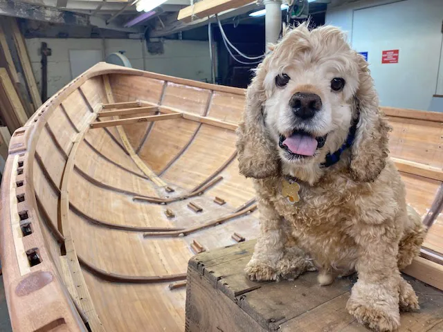 Not only has Honan become a staple in the New England wooden boatbuilding community, he talks to people across the globe. When his beloved shop companion, Lucky, passed recently, the response was overwhelming.