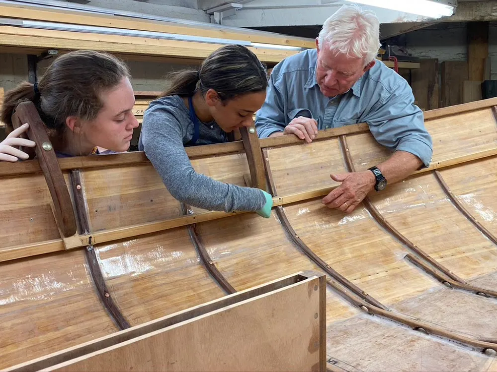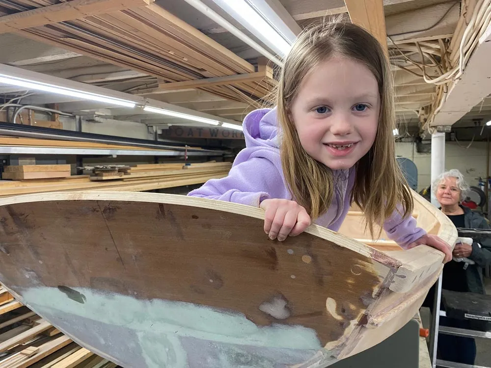 Above: Granddaughters Anna and Emily assisting on a boat build