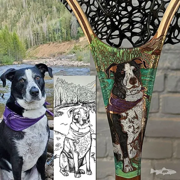 You can stay up-to-date and vote on which portrait to do next on Lewis’ Instagram, @waywardwoodshop. And check out her nets, fly boxes, apparel, and more on her website, customflyfishingnets.com.